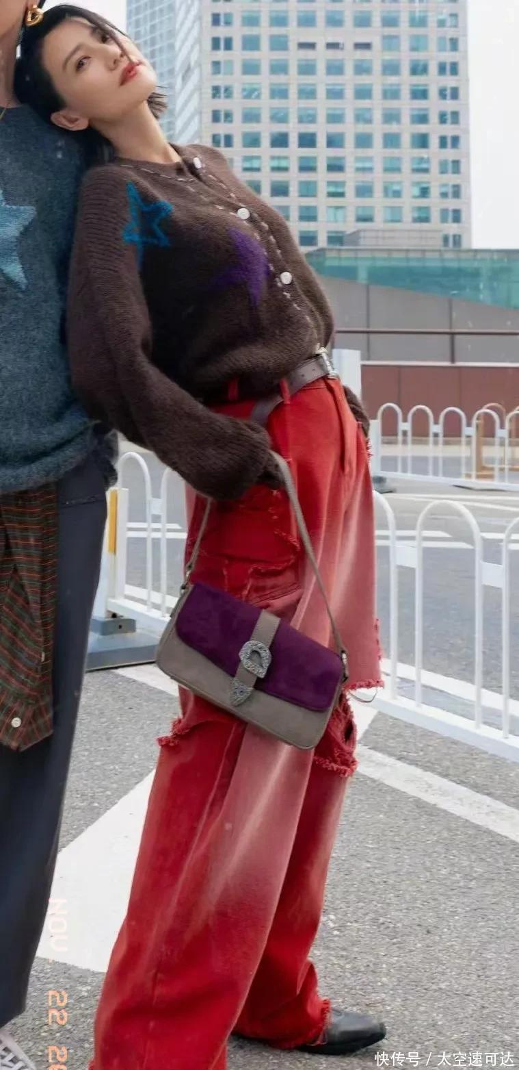 最新街拍里,她那棕格纹包的边角都磨得发浅了,不是专柜刻意做的做旧款,是背了好几年的真实痕迹,像咱手里那只舍不得扔的旧包——